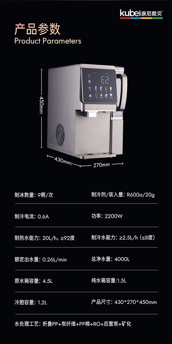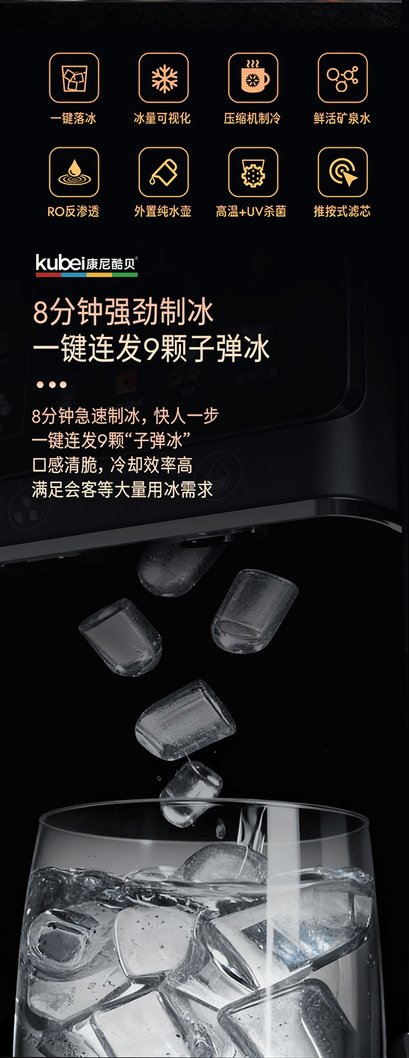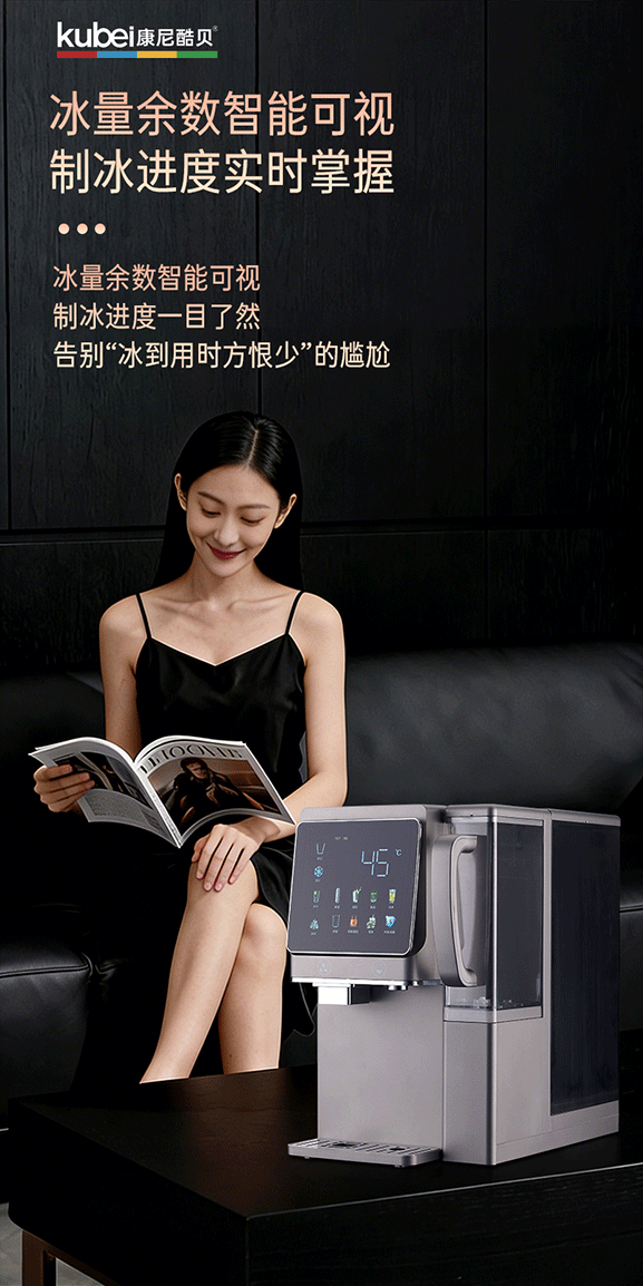 “有了它,想喝冰饮随时做,不用买冰块,也不用担心卫生问题。纯净水制冰,一键就落杯;水质还经过双芯净化矿化,家里老小喝着都放心。操作也简单,大屏一碰就搞定,换芯清洗都方便,真是宅家冰饮的好搭子。”